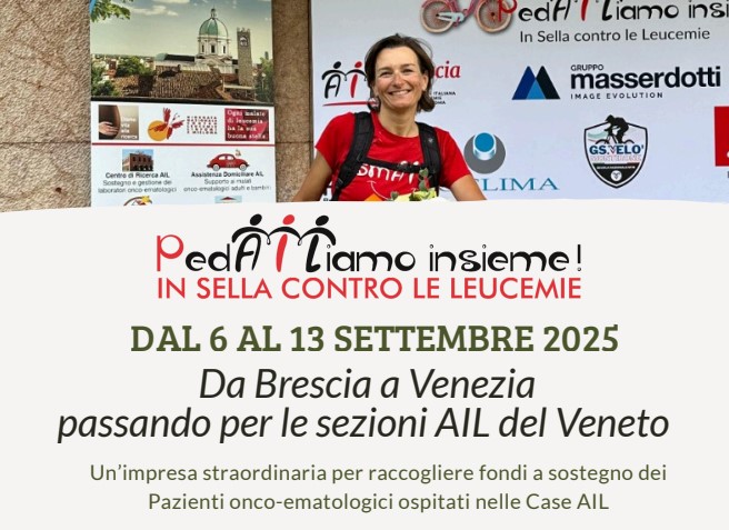 Rispettando il programma pianificato, la cara amica ciclista Simona Casana Volontaria della sezione AIL di Brescia, nel pomeriggio di venerdì scorso è giunta ad Adria, penultima tappa di un tour programmato fra Trentino e Veneto visitando le sedi provinciali di AIL.